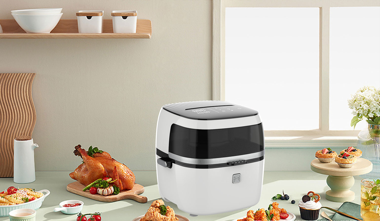 Цей 2022 верхня дотик -на панель регульована машина для приготування їжі на фритюрниці Electric Air Fryer YYZG-650A має захист від перегріву, забезпечуючи безпеку шляхом автоматичного вимкнення у разі надмірного тепла. Прилад має високоякісну антипригарну поверхню, полегшуючи легке очищення після використання. Завдяки зручному для користувачів дизайном YYZG-650A пропонує просту роботу через інтерфейс сенсорної панелі, доповнений додатковою зручністю восьми вбудованих розумних меню. Цей універсальний супутник кухні не лише забезпечує регульовану температуру для точної приготування, але й спрощує кулінарний досвід своїм заздалегідь запрограмованим меню, що робить його ідеальним вибором для тих, хто шукає сучасного, ефективного та багатофункціонального рішення для смаження.